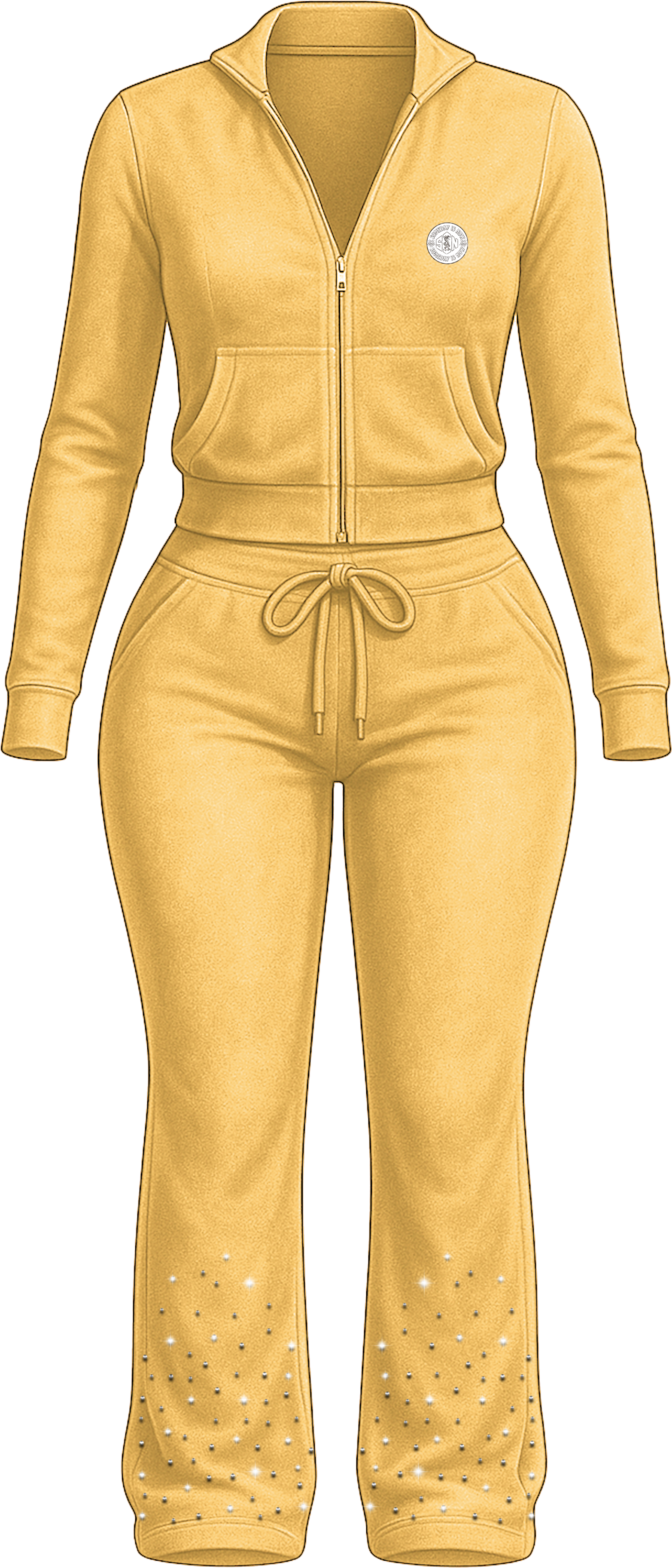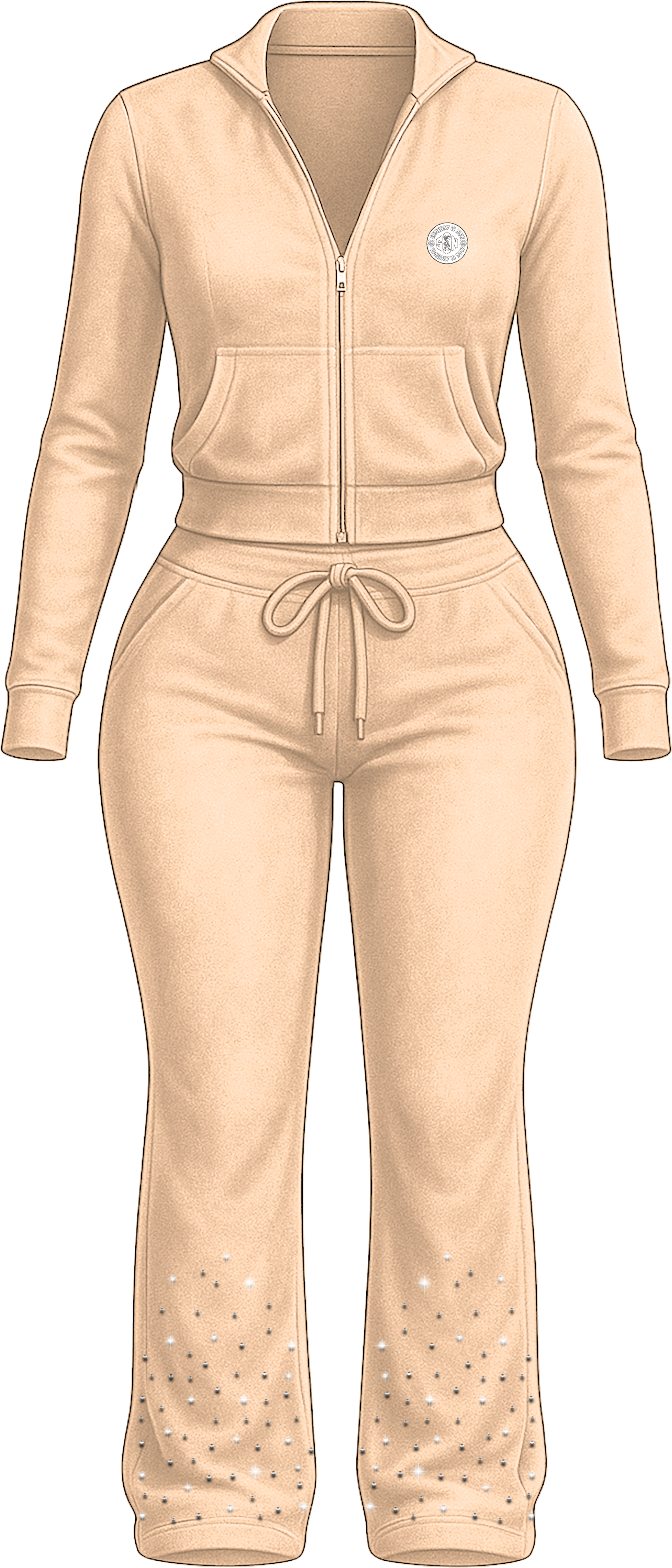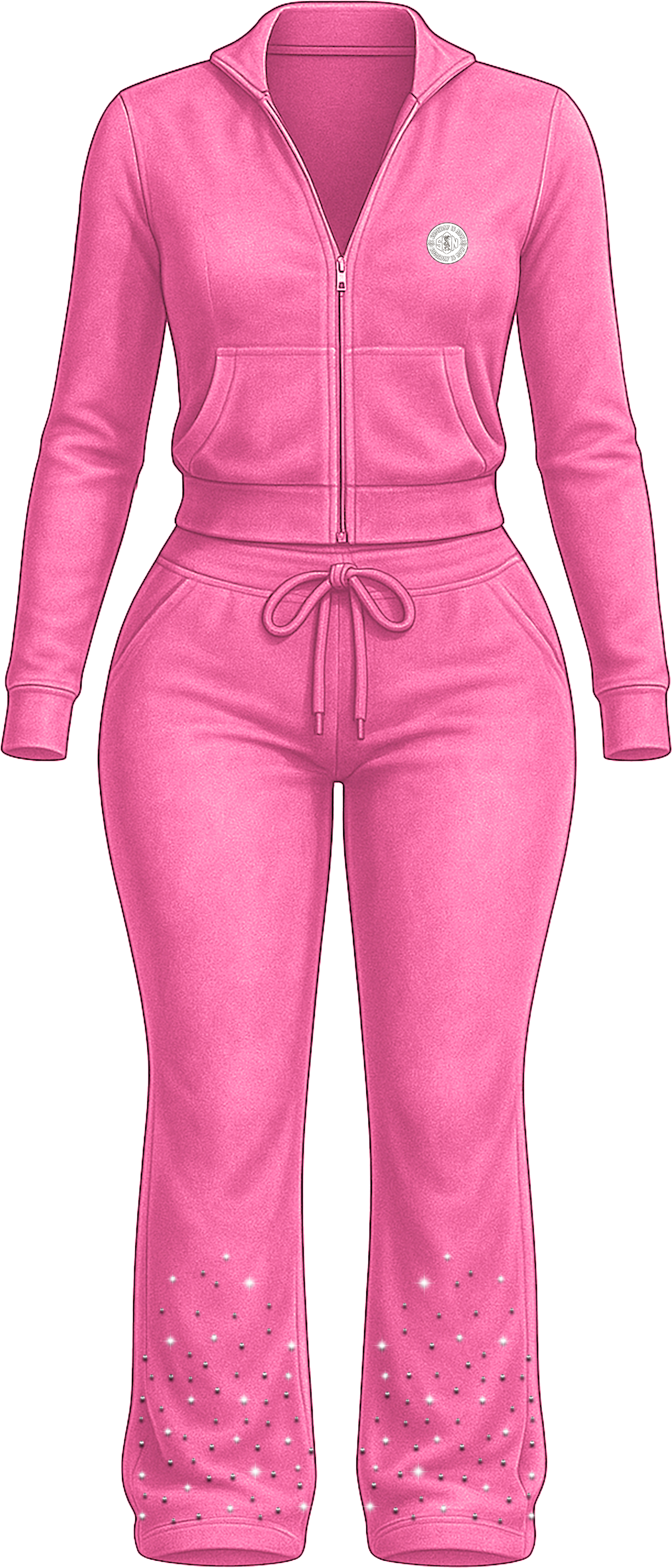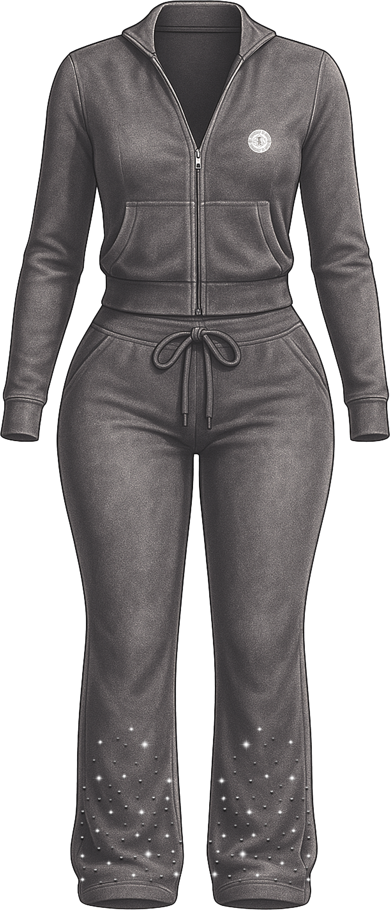 THE SINSATIONAL PLUSH SET is where elevated comfort meets bold glamour. Designed for extreme softness and effortless wear, the set wraps the body in plush luxury while delivering all-day comfort. Fashionable rhinestone detailing along the leg and surrounding the logos on both the hood and breast adds a striking, refined sparkle—making the set as eye-catching as it is indulgently comfortable.